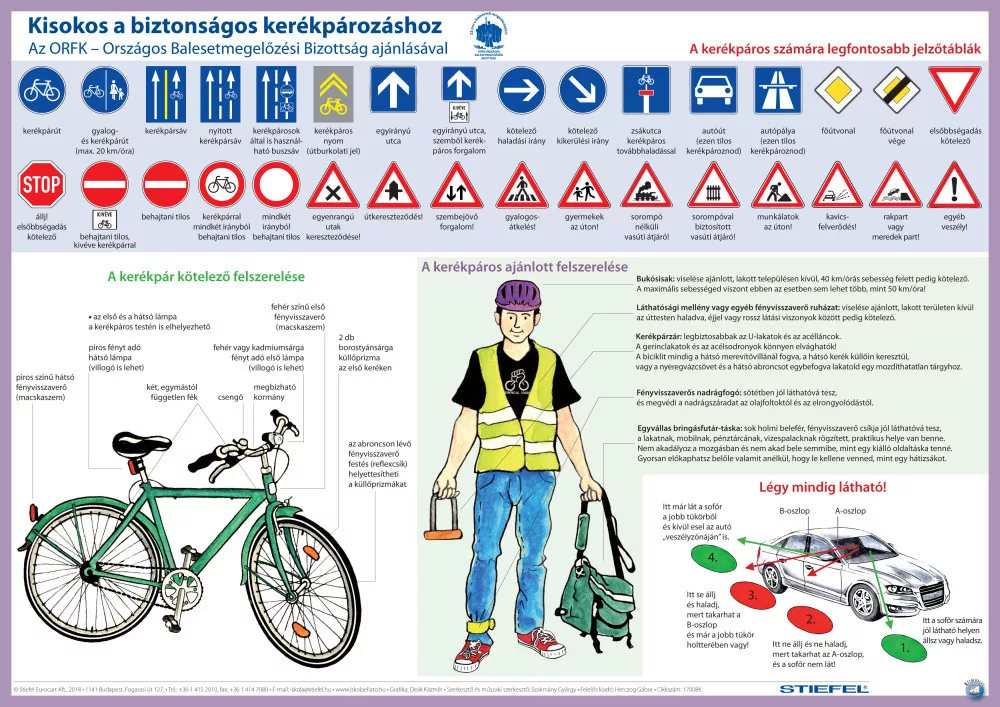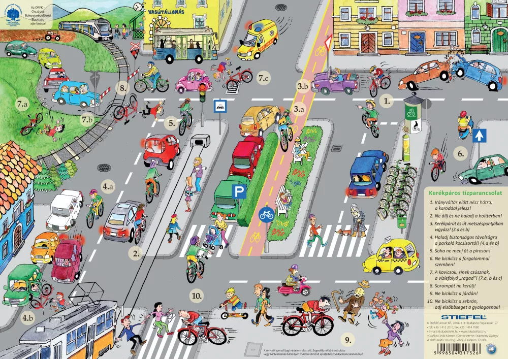 A maga nemében rendkívüli, hazánkban eddig soha nem látott termék a „Kerékpáros túlélés tízparancsolata”, amely hasznos útmutatásul szolgál nemcsak a diákok, hanem az égbe szökő benzinárak miatt, vagy az egészségük megőrzése céljából kerékpárra „pattanó” idősebb korosztály számára is: egyik oldalán bemutatja a KRESZ legfrissebb és hatályos rendelkezései alapján a kerékpár kötelező felszerelését (amelynek bonyolultságával kapcsolatban napjainkban is számos tévhit kering), a kerékpáros nem kötelező, de ajánlott felszereléseit (mint például a bukósisak, vagy egy jó kerékpárlakat), a leggyakoribb útjelzőtáblákat, amelyekkel egy kerékpáros találkozik, sőt, azt is, hogy a városi forgalomban az autókhoz viszonyítva lehetőség szerint hol kell közlekednie a kerékpárosnak, hogy mindig jól látható maradjon. Azonban az igazi szenzációt a könyöklő másik oldalán láthatjuk: egy madártávlatból nézett, Deák Kázmér grafikusművész tollából származó, élethűen, ám humorosan megrajzolt várost, amelyben a kerékpárosokra nézve tíz legveszélyesebb szituációt ábrázoltuk, a könyöklő sarkába kerülő magyarázatokkal, avagy a „kerékpáros túlélés tízparancsolatával”. Az a biciklis, aki betartja a könyöklőnk útmutatásait, – legalább is saját hibájából – bizonyára soha nem kerülhet bajba!