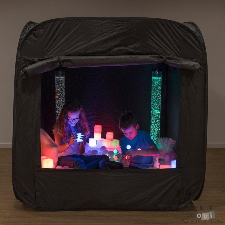 Nyugtató, biztonságos szenzoros hely a gyermekek számára, ahol pihenhetnek, lazíthatnak vagy felfedezhetnek.
